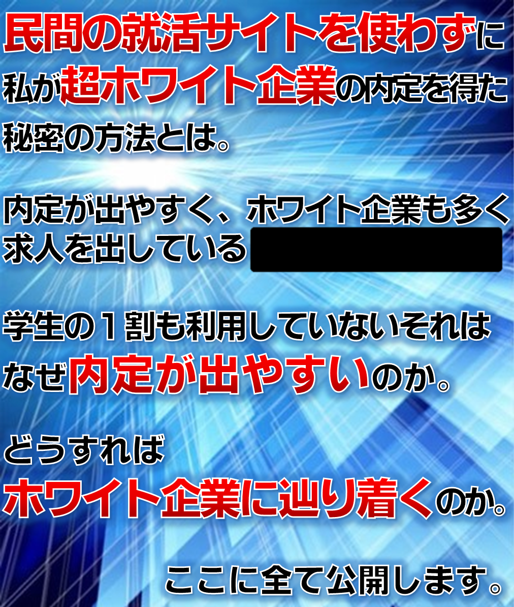 ここで深く触れることは出来ませんが、このホワイト企業の求人スタイルを知っておくことで就職活動の難易度が劇的に変わります。