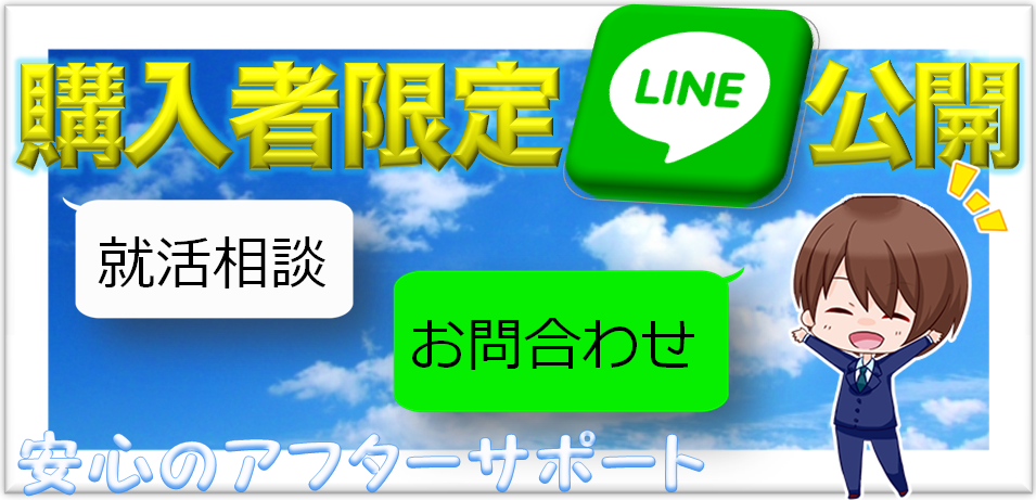 購入者限定LINEを公開し、いつでも就活の相談や質問を送っていただくことができます。