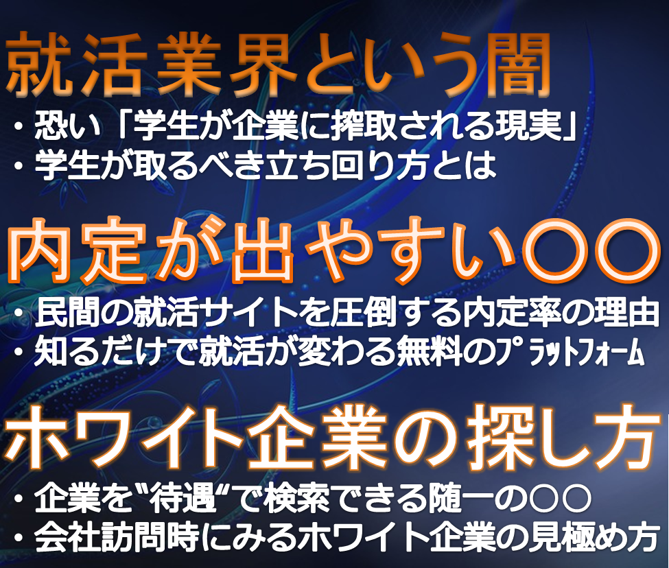 情報こそが、ホワイト企業の内定を得るまでの最短経路を導いてくれるのです。